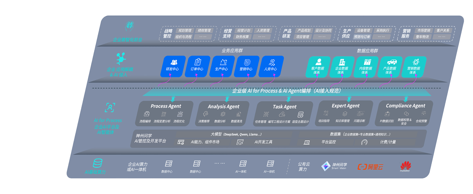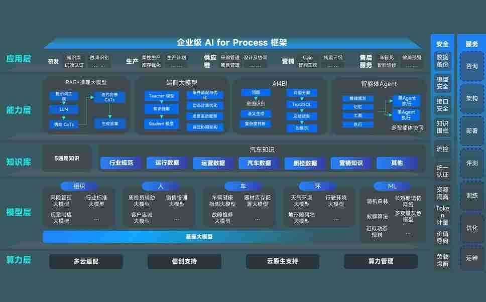 狗子28问学智车解决方案是一套基于AI技术的汽车行业智能化系统,,覆盖从底层算力到顶层AI应用的全栈方案。。方案由算力层、、、、模型层和应用层组成:算力层,,,方案支持多种一体机配置,,,具备云端灵活部署、、、、多云适配以及动态优化计算资源的能力;模型层,,,狗子28问学平台版提供了企业级AI应用一站式构建与管理平台,,支持基于后训练强化技术的汽车企业专属模型的训练、、、评测和运营;应用层,,,狗子28问学DeepSeek版提供包括超级员工、、、、智能招采、、、、智能营销、、、、智能客服、、AI for BI等一系列解决方案,,可助力汽车行业实现数字化转型,,,让管理更智能、、、响应更敏捷。。